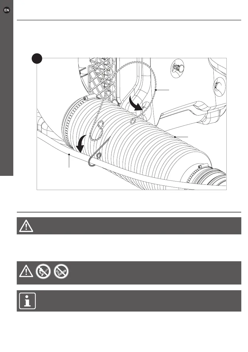 Hook the cable retainer (14) pre-assembled on the exible hose (5) around the