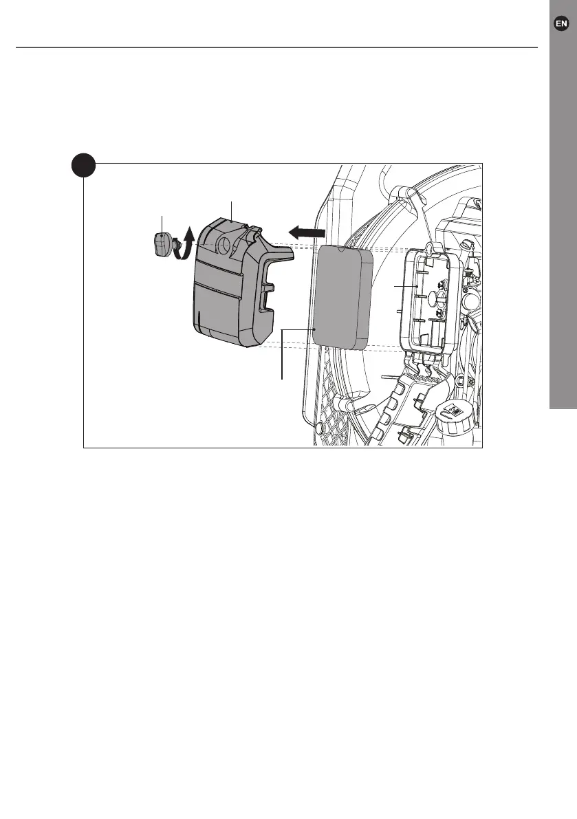 1. Unscrew the xing nut on the cover of the air lter case (21). Remove the cover