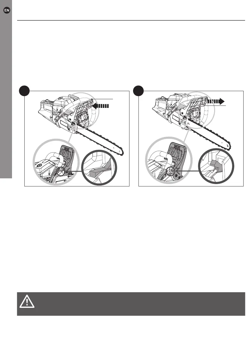 WARNING! If the saw chain fails to stop when the chain brake is engaged,
