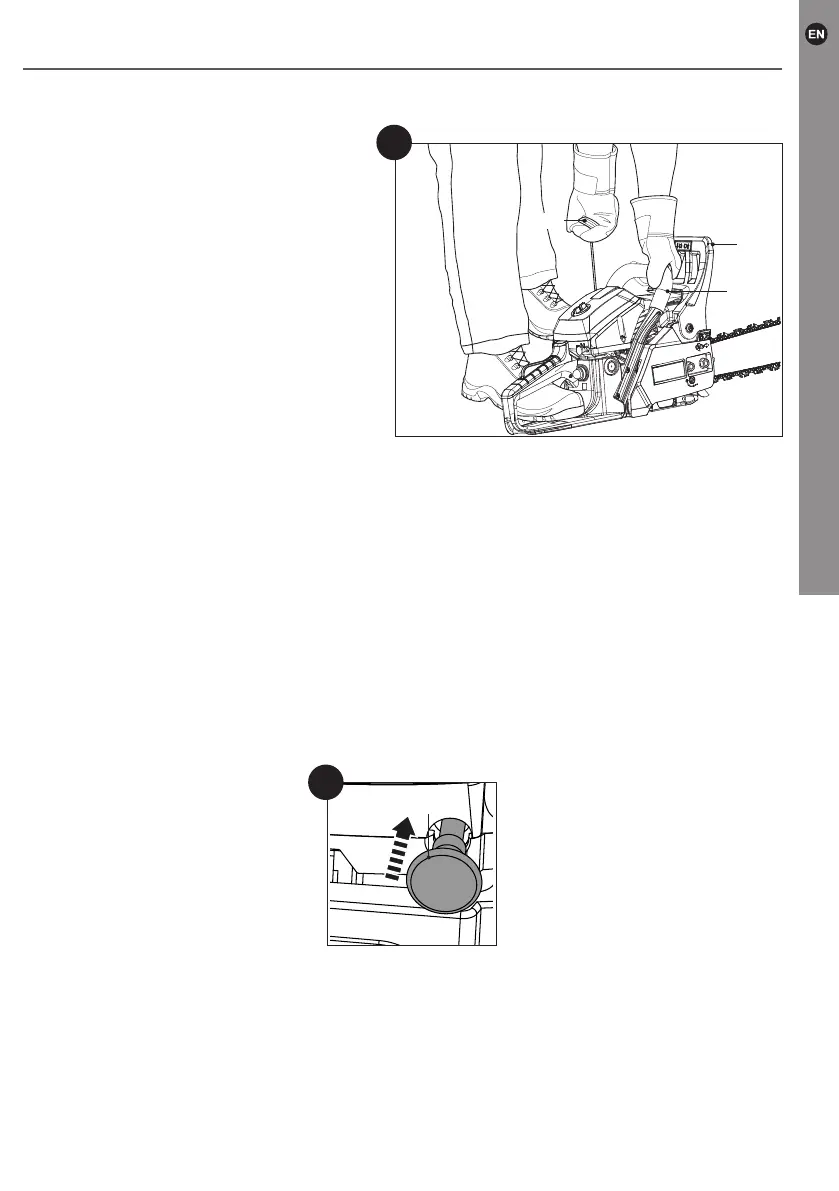 Hold the product securely to the ground. Place your left hand on the front handle (5)