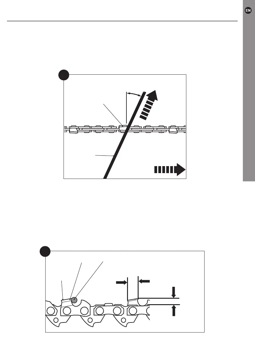 4. Use the chain le (27), with diameter 1.1 times the cutting tooth depth. Make sure
