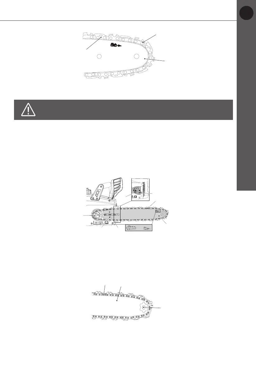 6. The saw chain movement is as indicated by the arrow. Make sure the saw