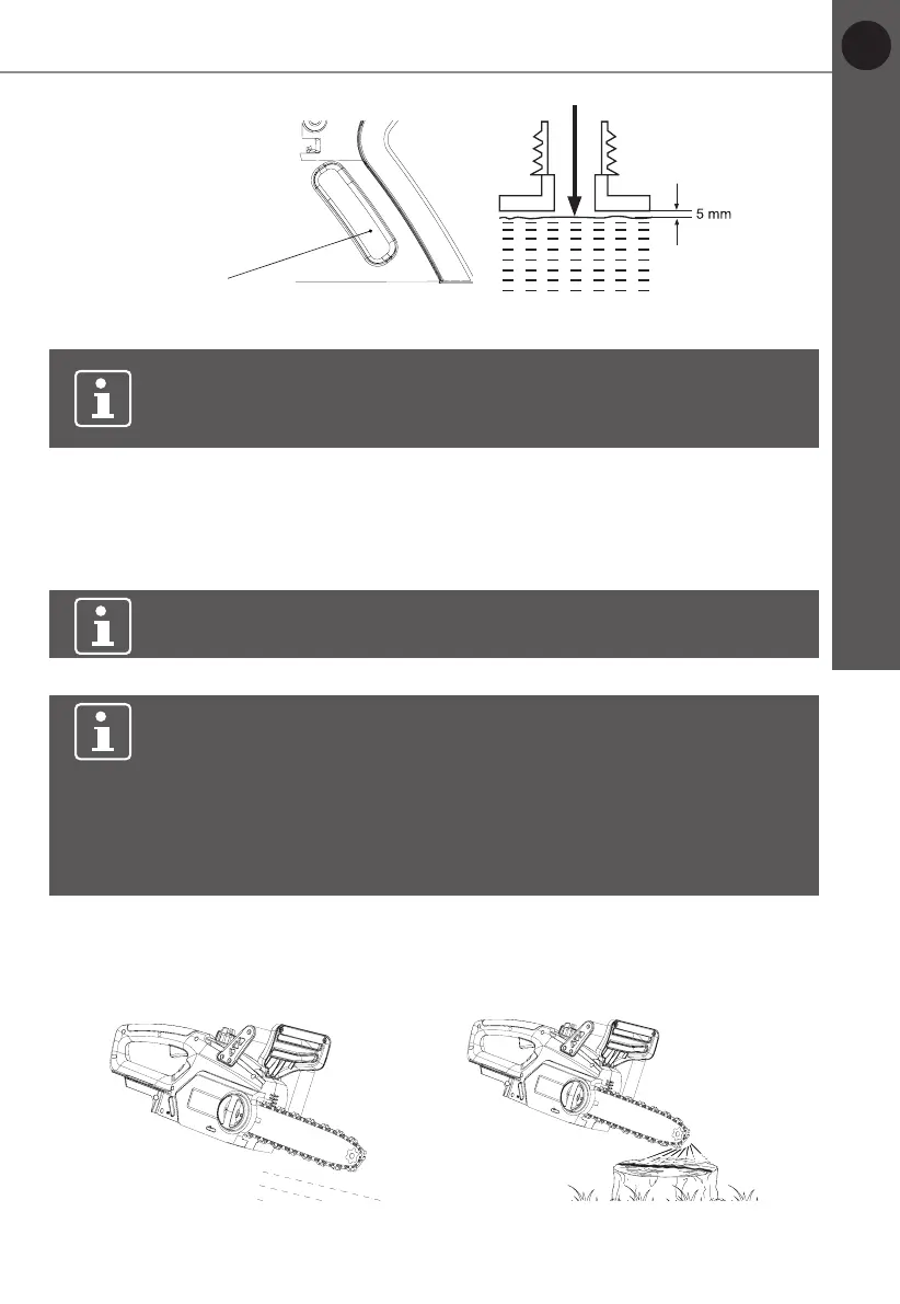 1. Make sure the guide bar (12) and the saw chain (11) are in place when you