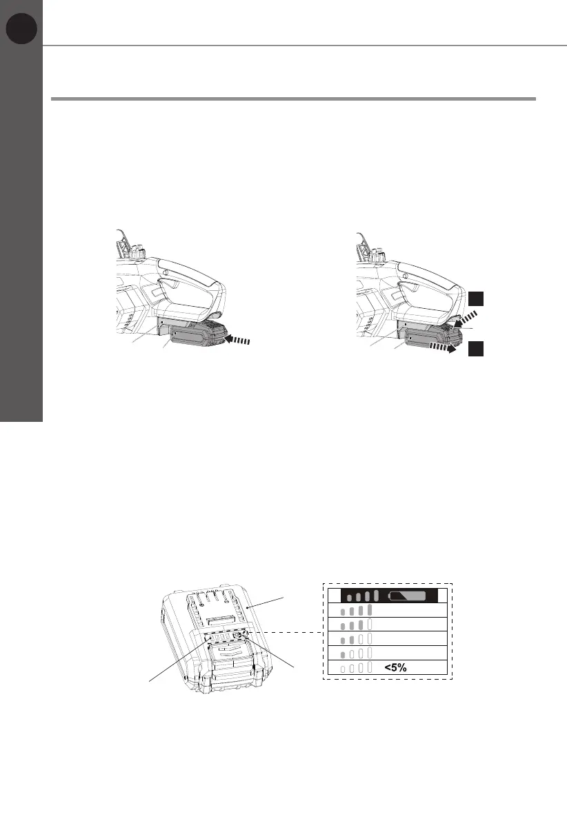Press the battery capacity button (23a) to check battery capacity (Fig. 15). The