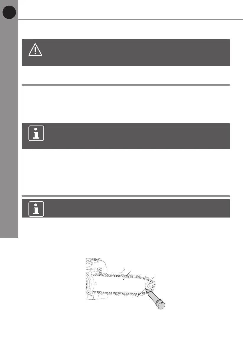 4. Rotate the saw chain (11) by hand. Repeat the lubrication procedure until