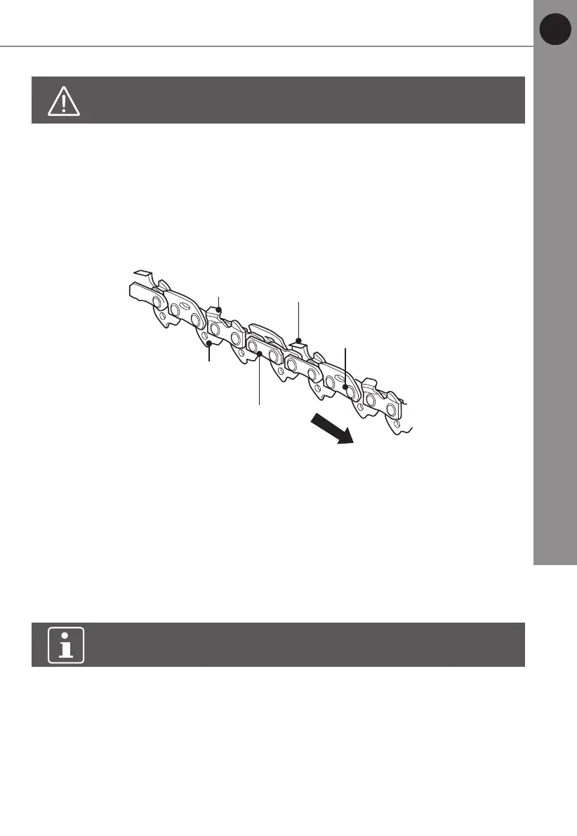 4. Use a chain le, whose diameter is 1.1 times the cutting tooth depth. Make