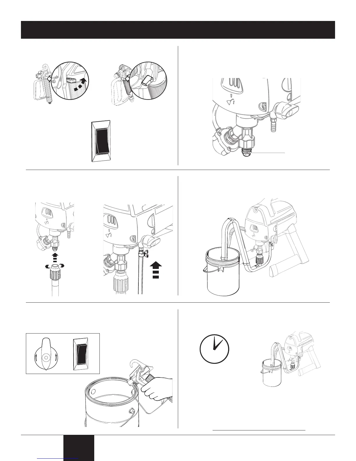 1. Lock the gun and turn the pump OFF (O).