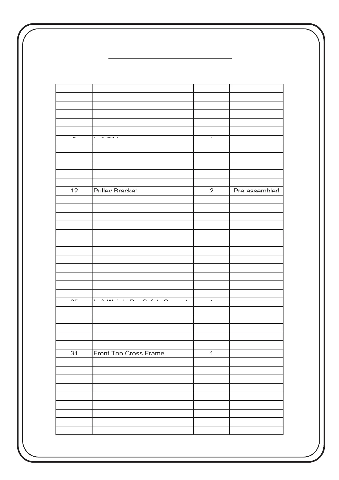 2 Right Main Upright Frame 1 Pre-assembled