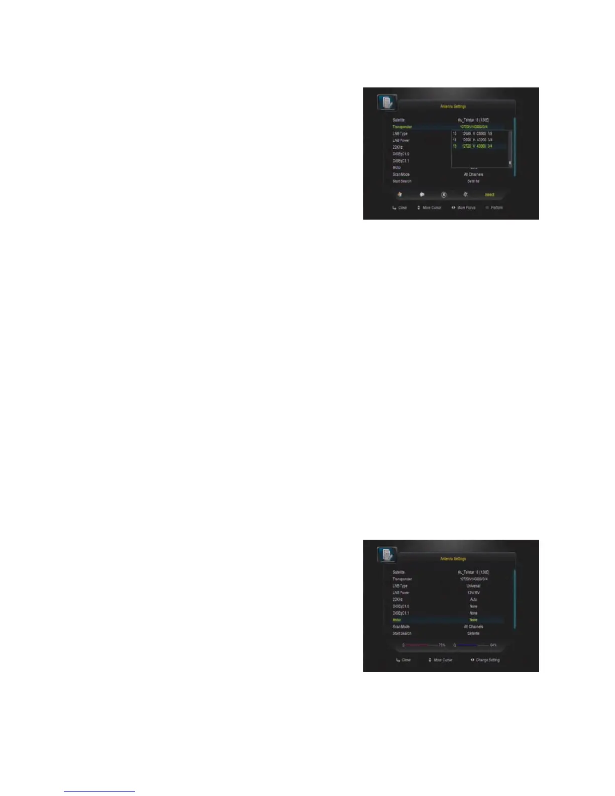 frequency or define yourself, and keep LNB power to be 13/18V.