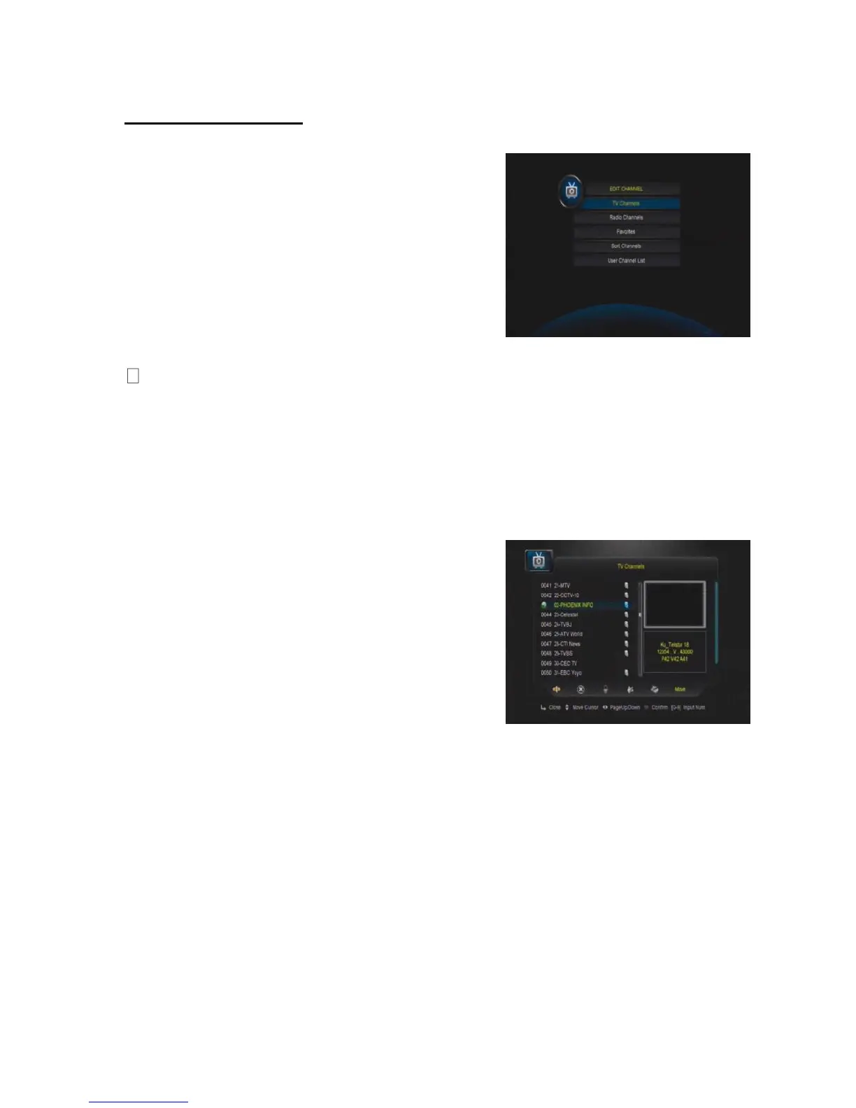 Here you can Select Channel, Delete Channel, Skip Channel, Move Channel, Lock