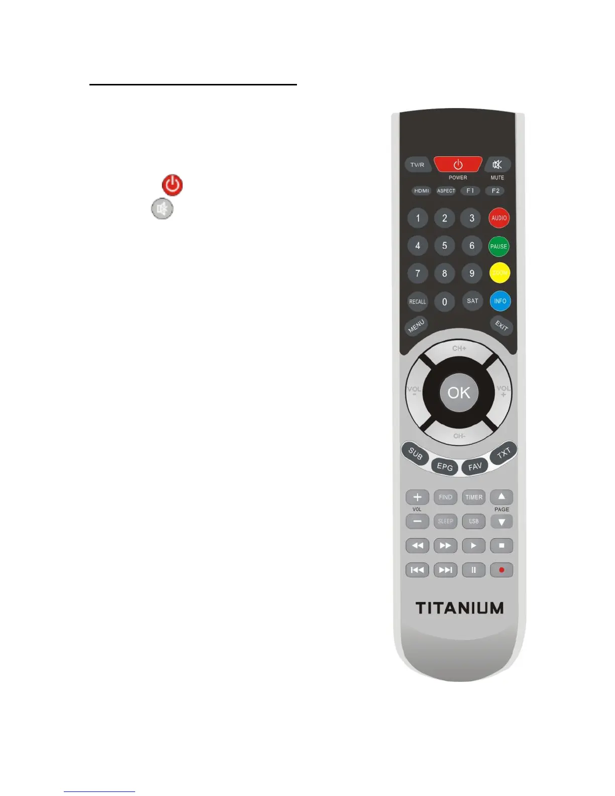 1.TV/R: Switch between TV and RADIO.