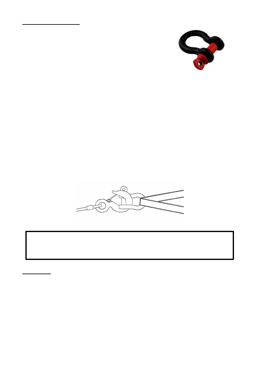 WARNING! Shackles are not to be used to lift or hold the load. Any such use