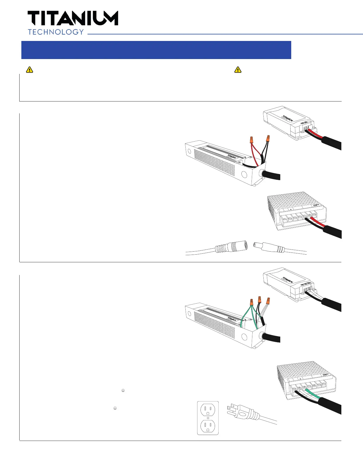 • Attach the black cable of the LED ribbon to the terminal block marked with a V- on the transformer