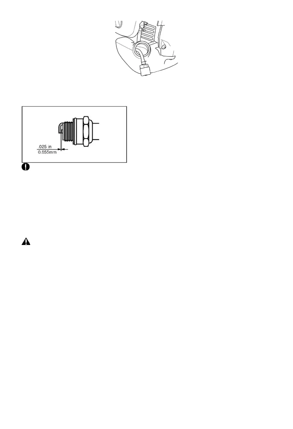 • To install the spark plug, first turn the plug until it is finger tight, then tighten it a quarter turn more