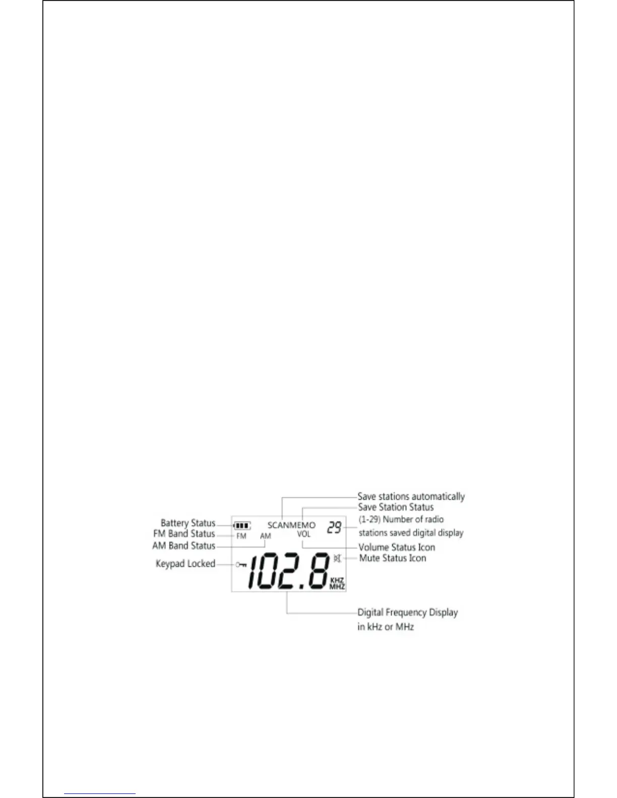 LCD: For displaying the frequency, and memory presets.