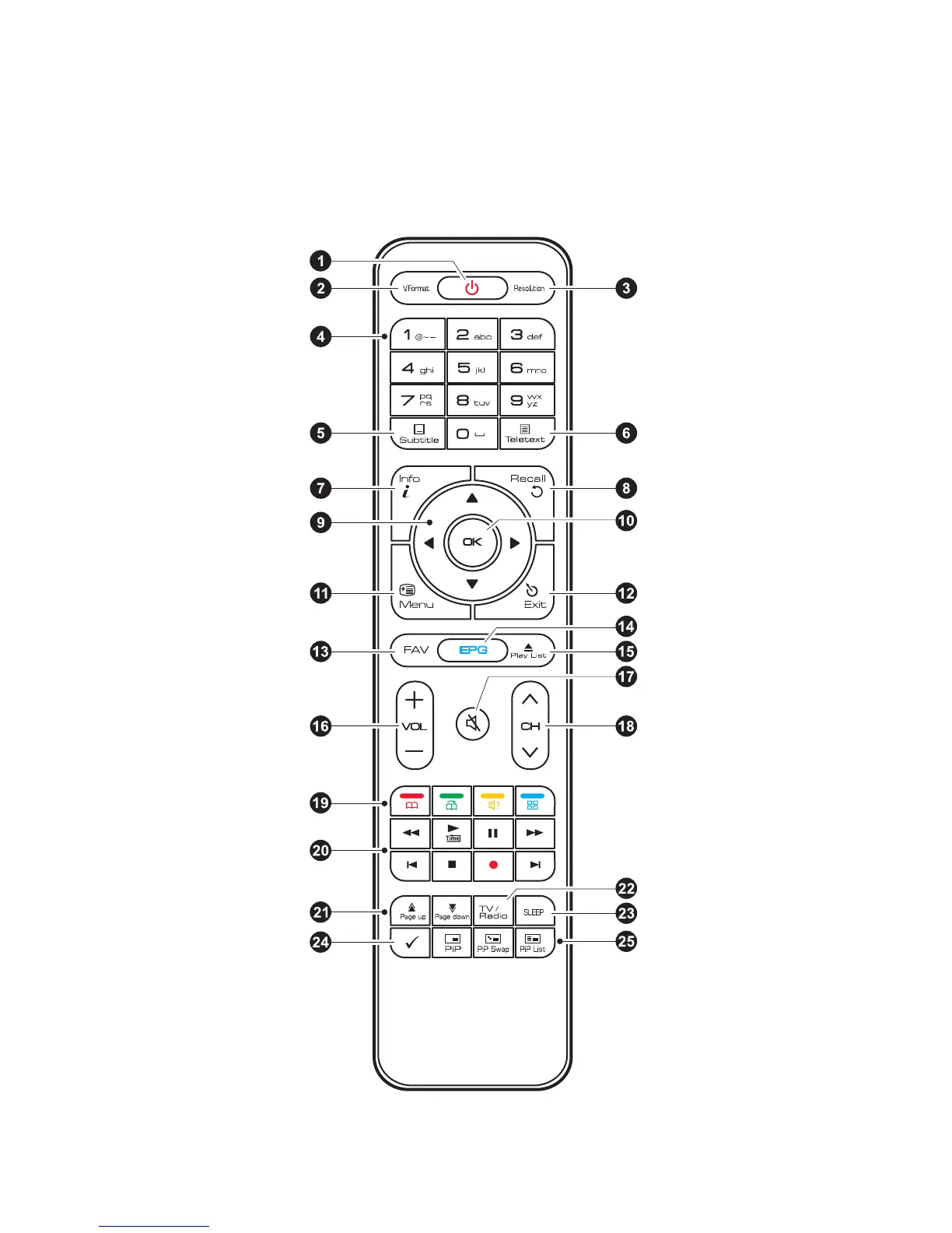 Use the remote control to control the digital TV receiver. Before using, make sure