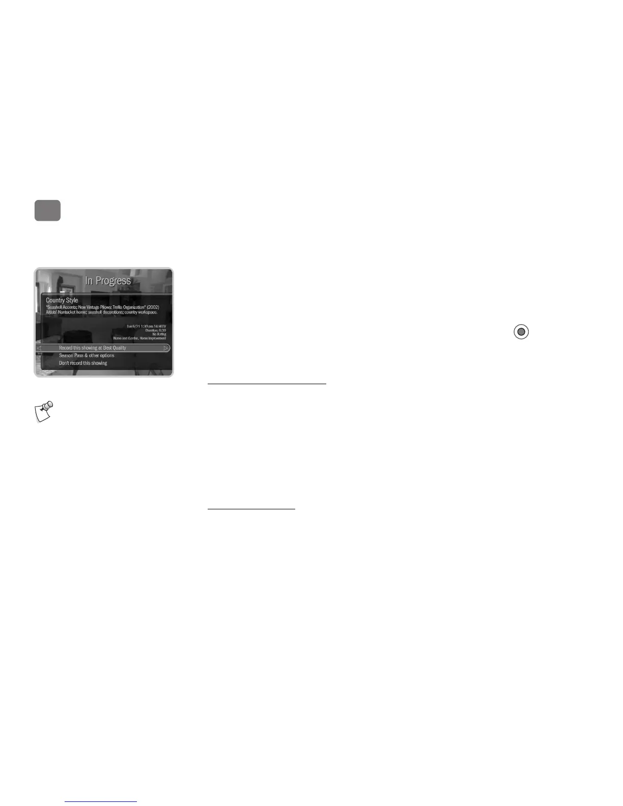 the screen that appears, select Record This Showing (Best Quality). Or select Season Pass &