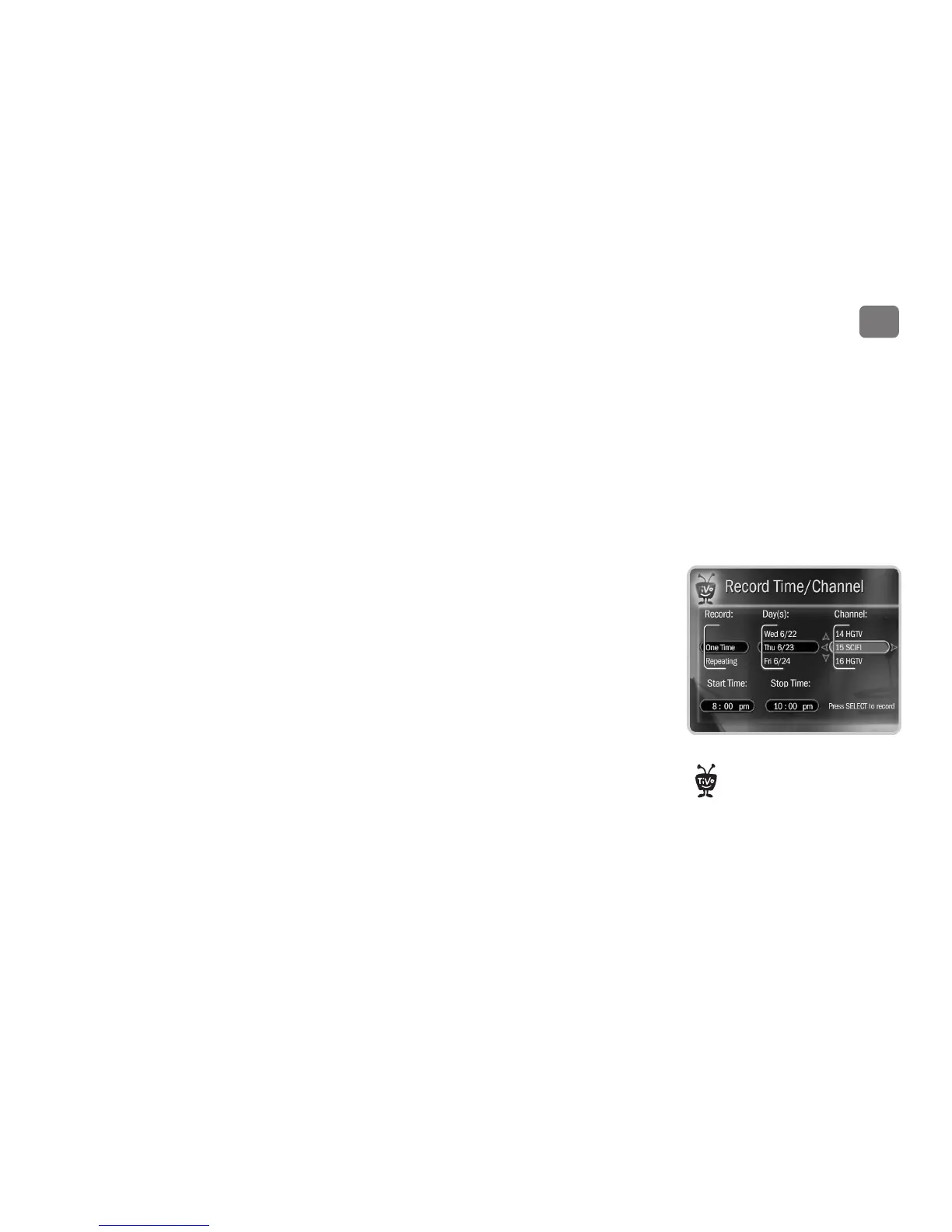 Manually Record Time/Channel. Schedule a recording on a specific channel at a specific time