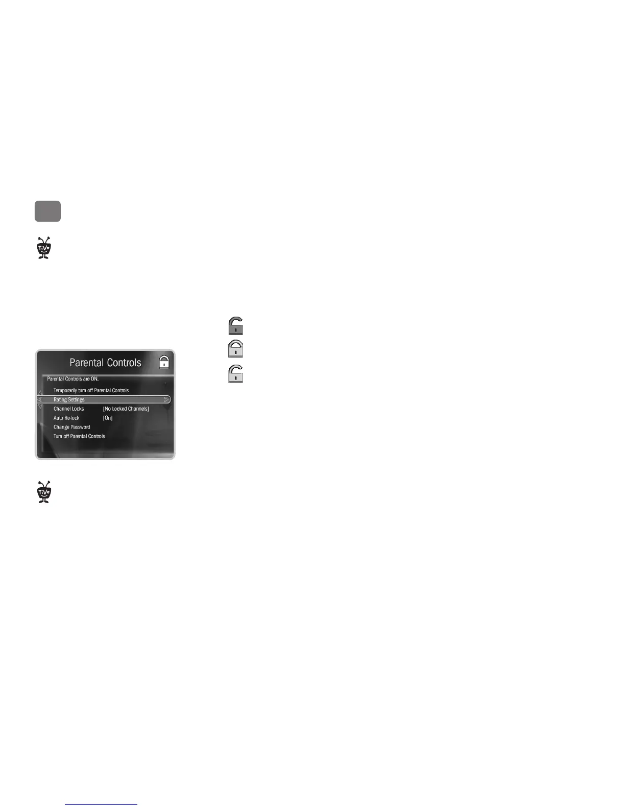 • Turn on Parental Controls. Use the number buttons on the remote control to enter a four-digit