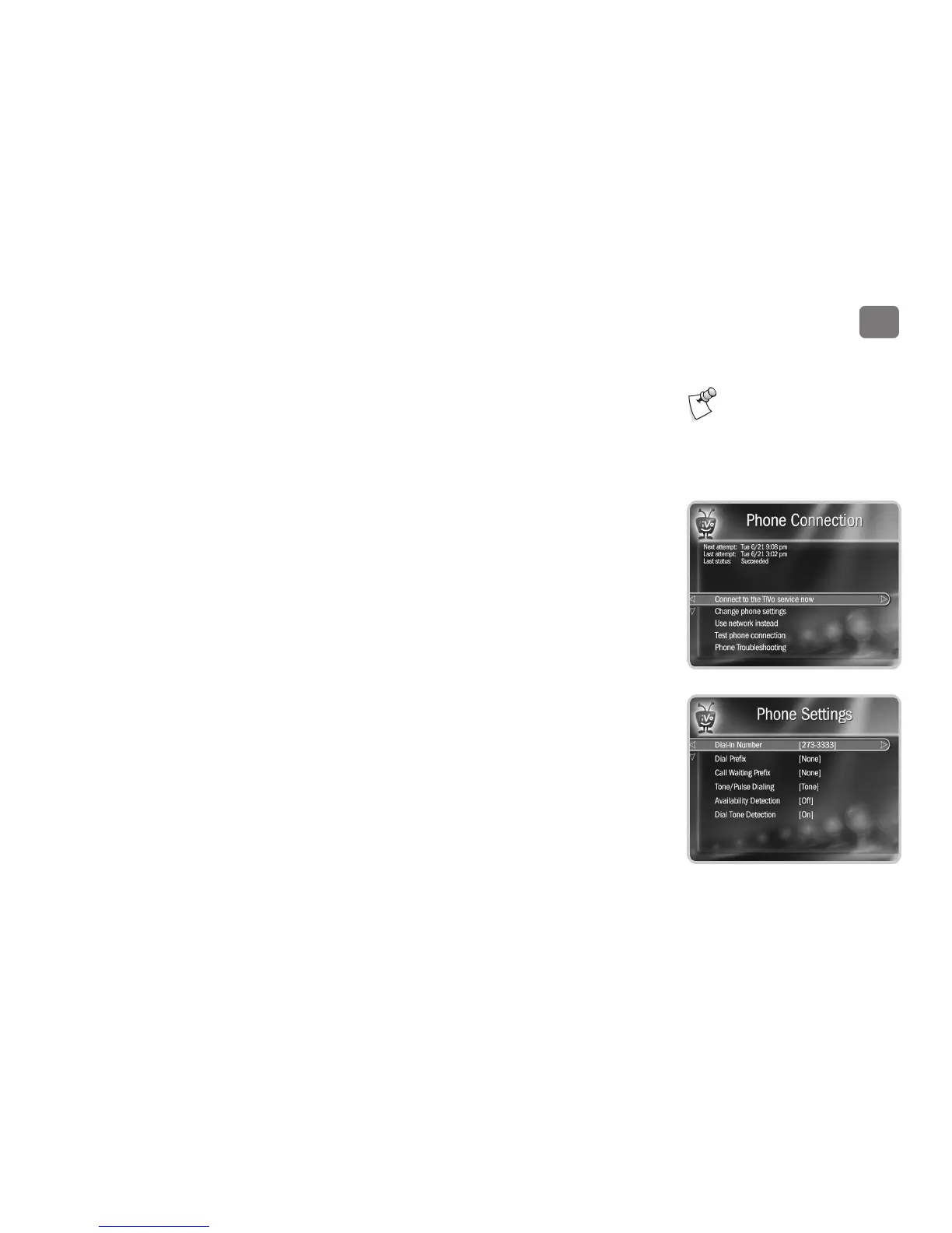 change area codes, the TiVo DVR will make a brief connection to get a list of dial-in
