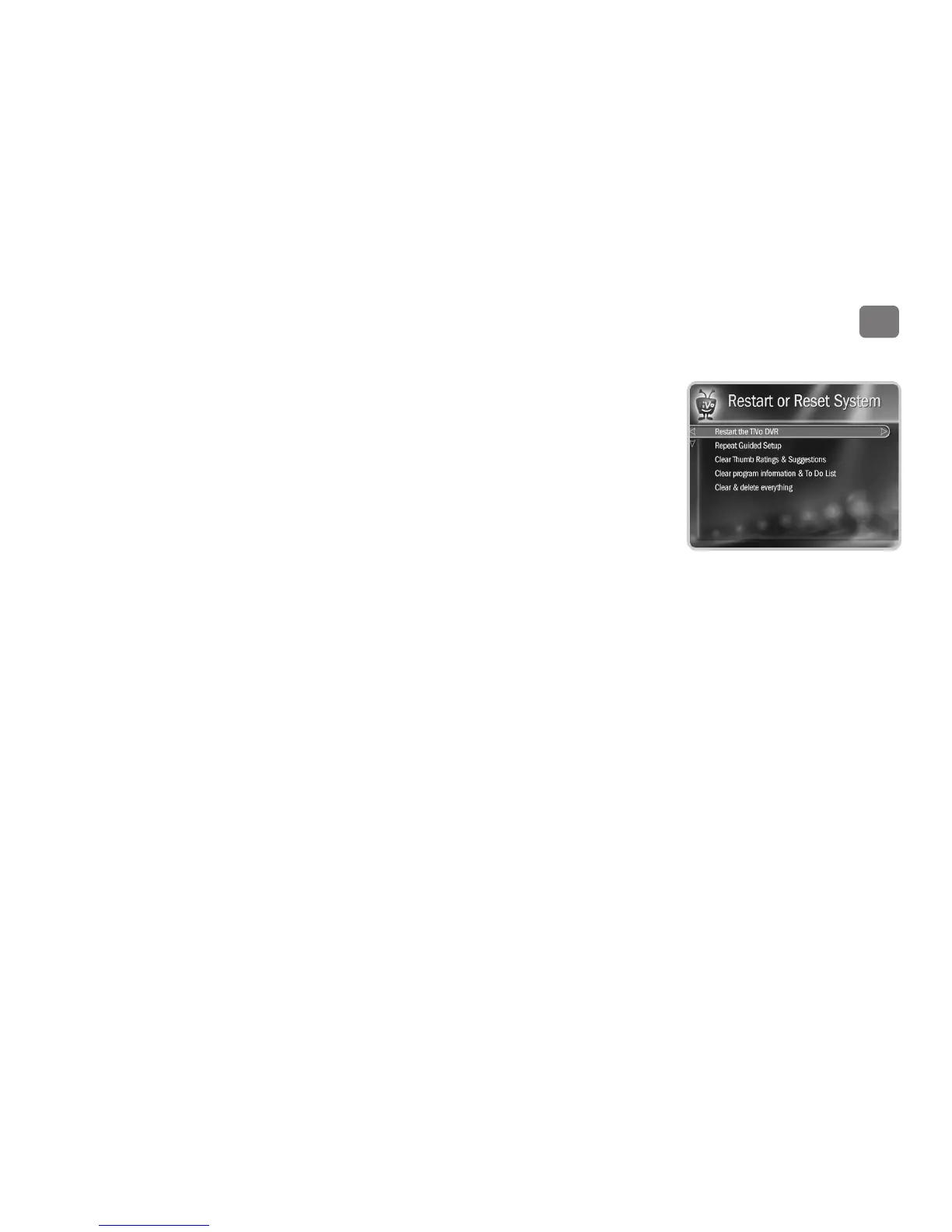 to restart your DVR as a routine troubleshooting step. Other options on this screen erase