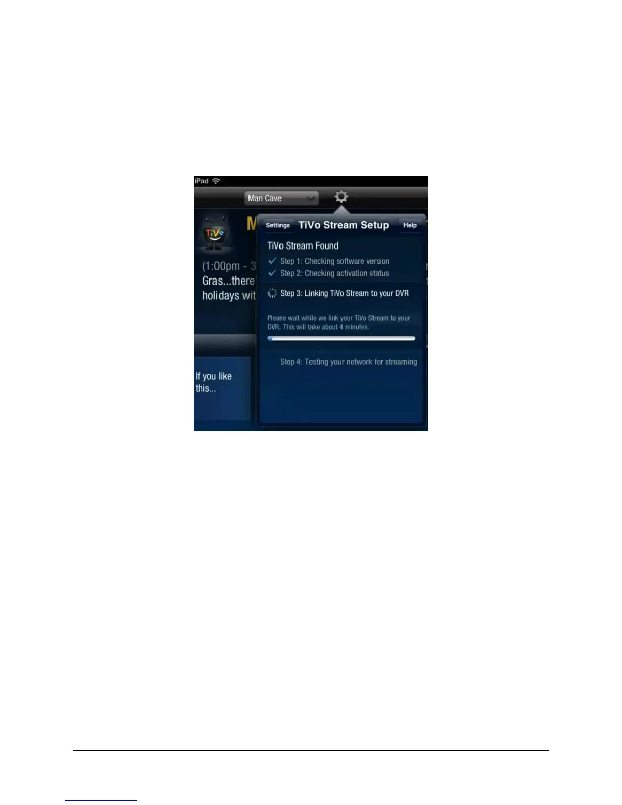 Please wait while we link your TiVo Stream to your DVR. This will take about 4 minutes.