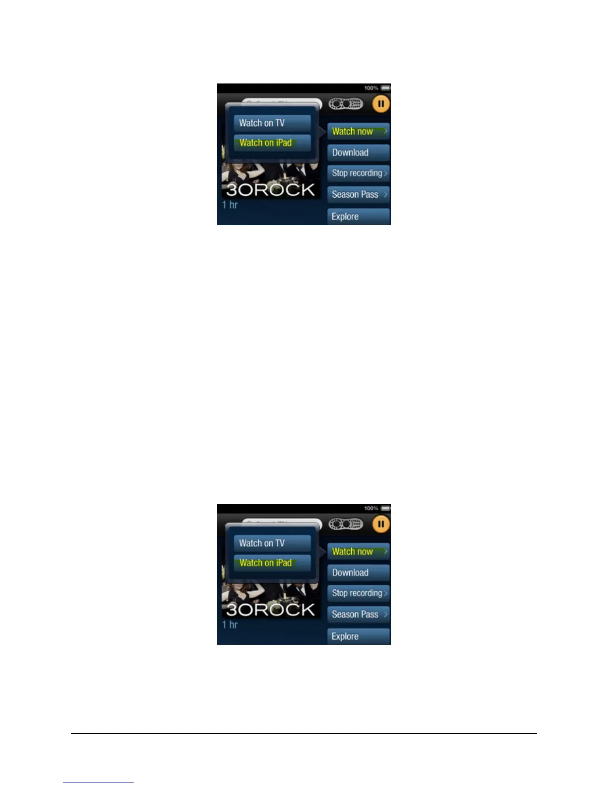 Once you tap Watch on iPad, the DVR starts recording the program and simultaneously the iPad