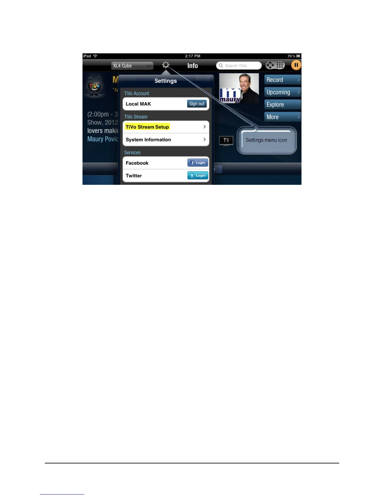 icon and then tapping TiVo Stream Setup (as shown in Figure 4–1).
