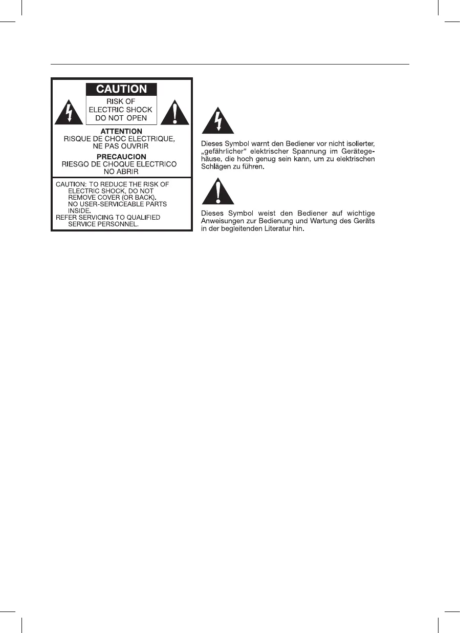 dergleichen. ACHTUNG! Setzen Sie das Gerät nicht Regen oder Feuchtigkeit aus.