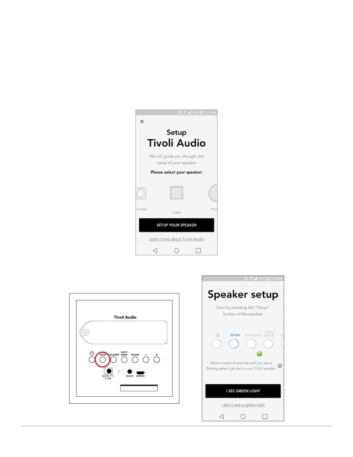 4. Paina laitteen takana olevaa Setup-painiketta ja sitten Next.