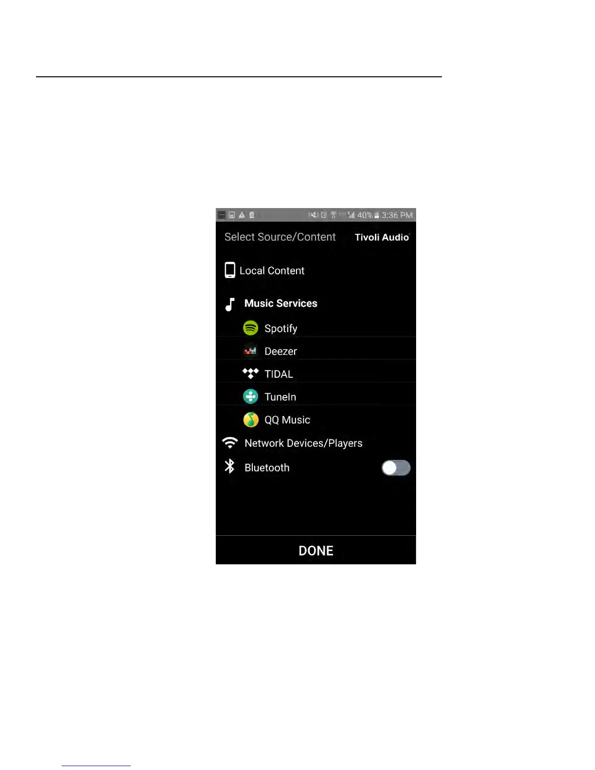1. Valitse musiikkilähde, jota haluat kuunnella. Jotkut lähteet, kuten Tidal ja Deezer, edellyttävät, että