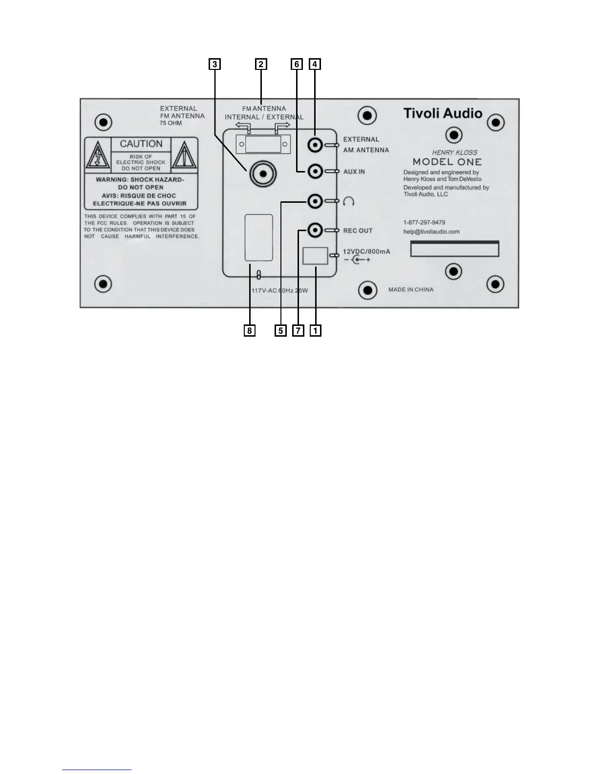 7. REC OUT: You can record from the Model One radio by connecting a cassette deck’s audio input