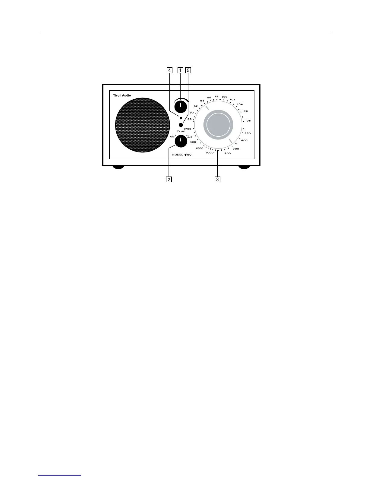 2. OFF/FM/AM/AUX: Tourner le bouton d’un cran vers la droite pour sélectionner la bande FM,