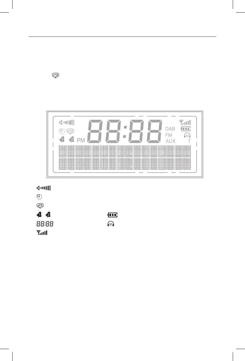 : Temps avant rappel (Snooze) AUX: Entrée auxiliaire
