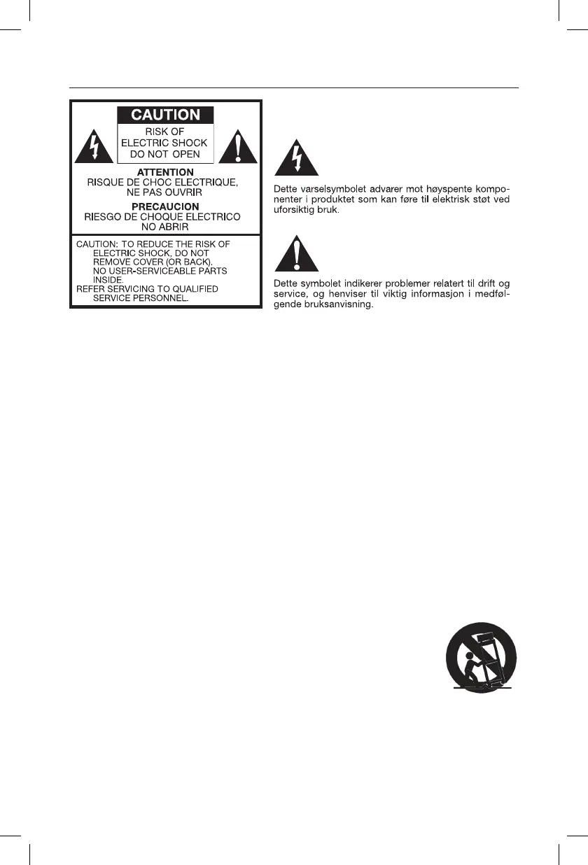 Også hvis apparatet har blitt utsatt for regn eller fuktighet, apparatet ikke virker korrekt
