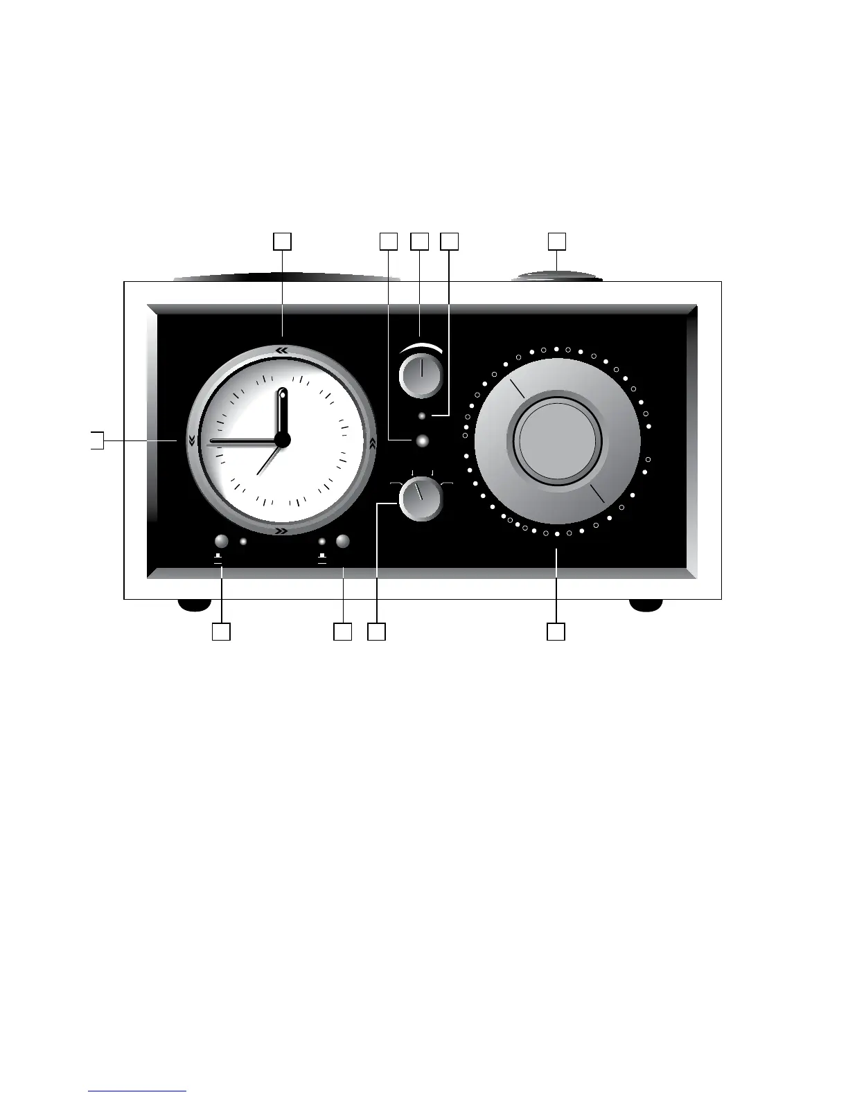 3. TUNING KNOB: Rotate the analog tuning dial to the right or to the left to adjust the FM (upper