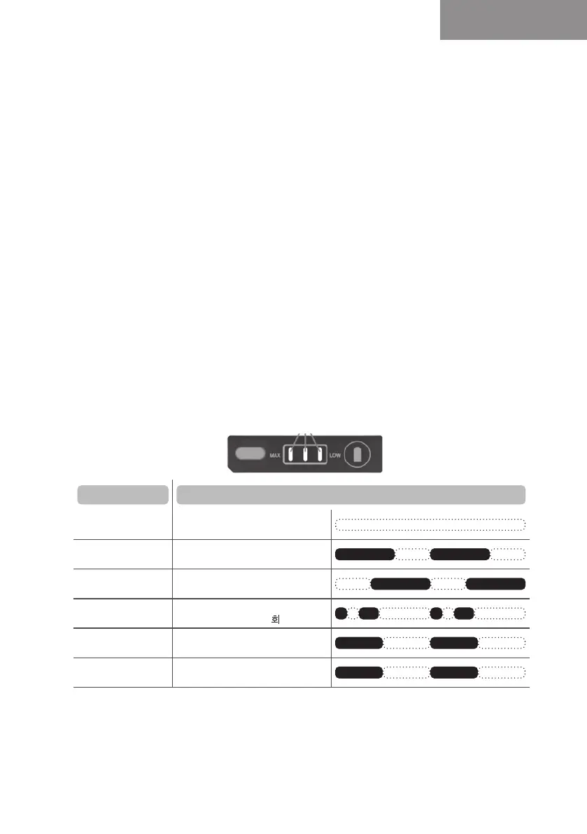 I tilfelle unormal modus under drift, viser LED-lampen for indikatoren for batterikapasitet den