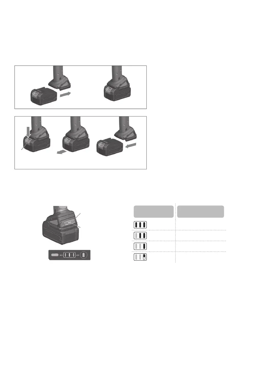 indtil det går i indgreb med et lille klik. Hvis ikke det gøres, kan batteriet falde ud af værktøjet ved et