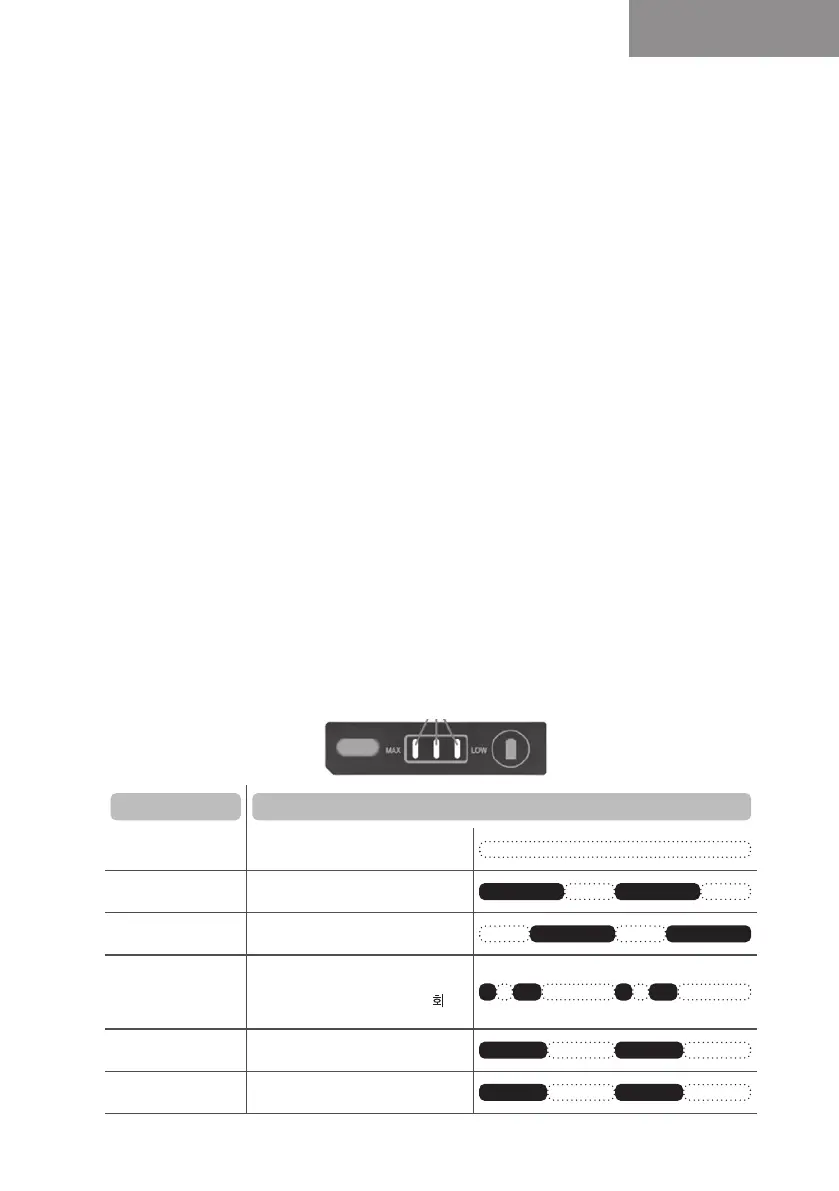 I tilfælde af unormal modus under drift, viser batterikapacitetsindikator-LED’en den nuværende