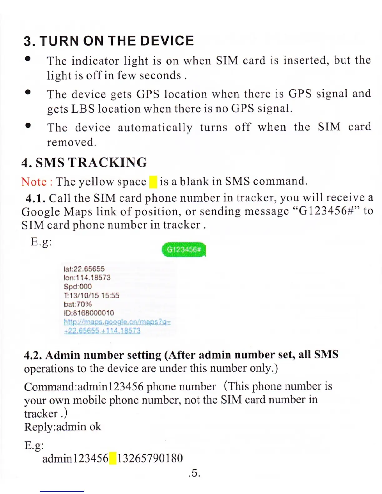 TK-STAR TK906 - SMS Tracking Functions; Get SMS Google Map Link; Set Admin Phone Number