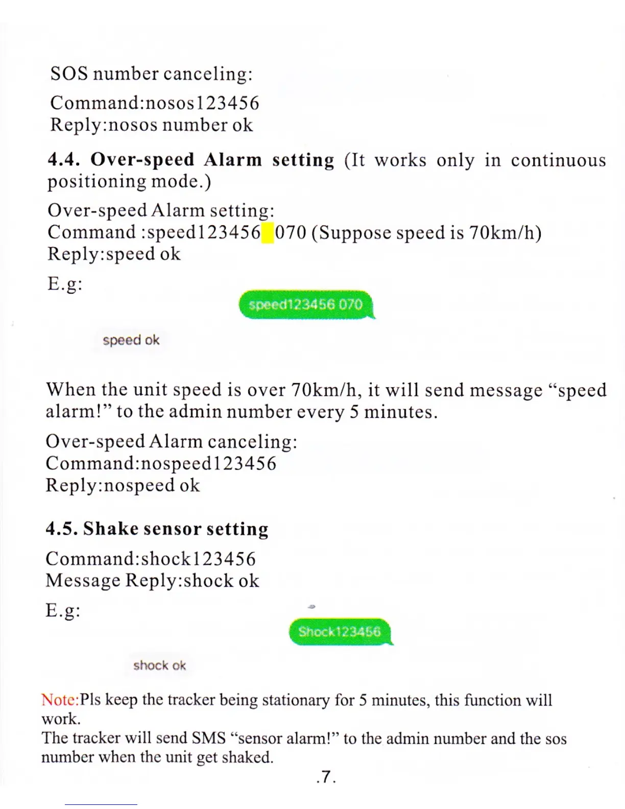 TK-STAR TK906 - Set Over-speed Alarm; Set Shake Sensor Alarm