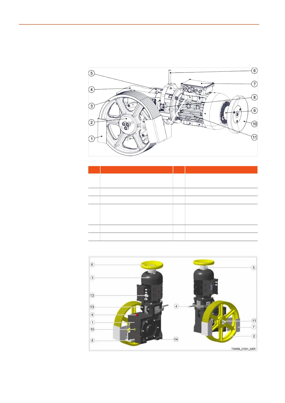 3 Traction sheave 4 Gear