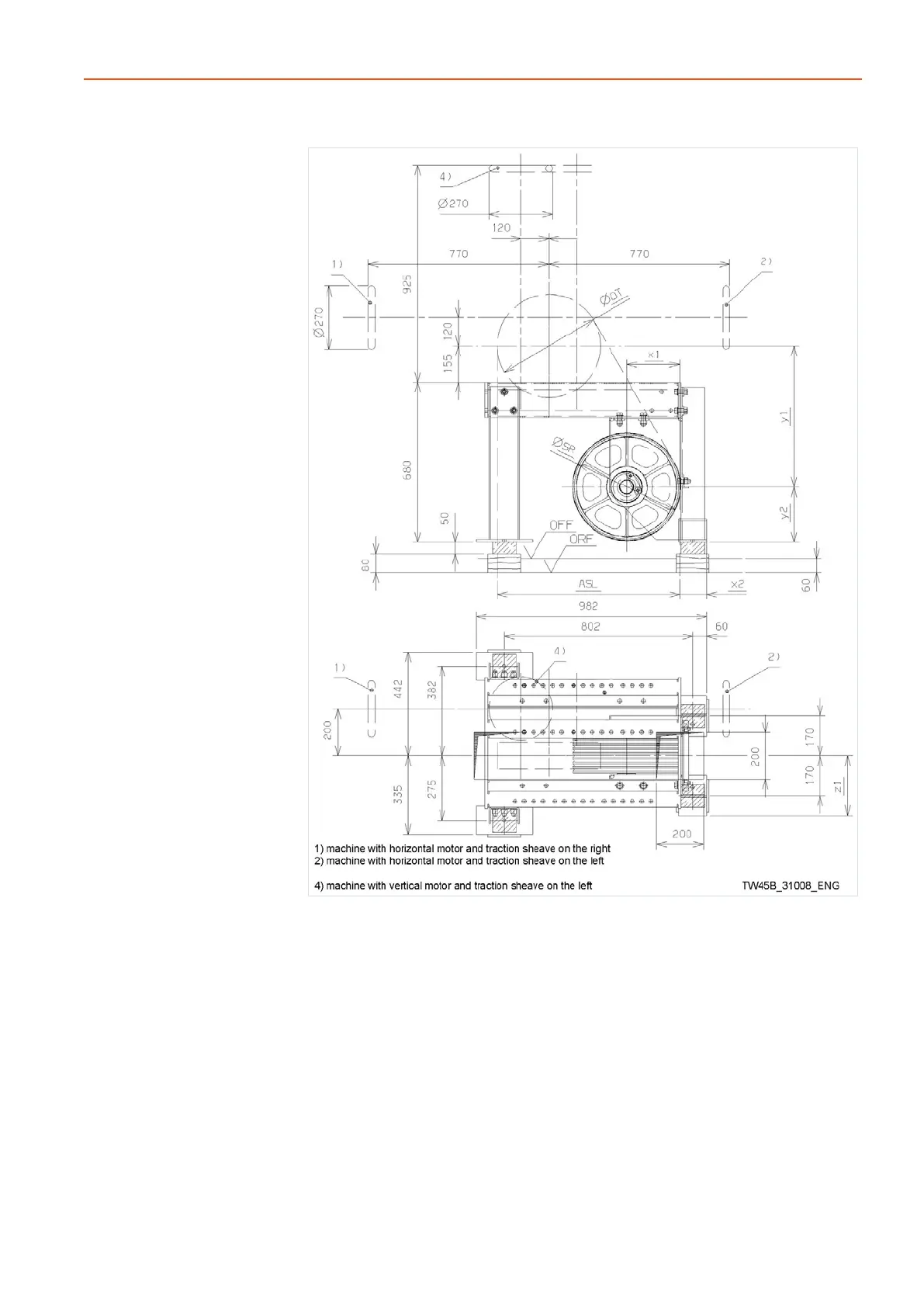 TKE TW45 - Machine base frame with rope pulley - right-hand version of the rope pulley position