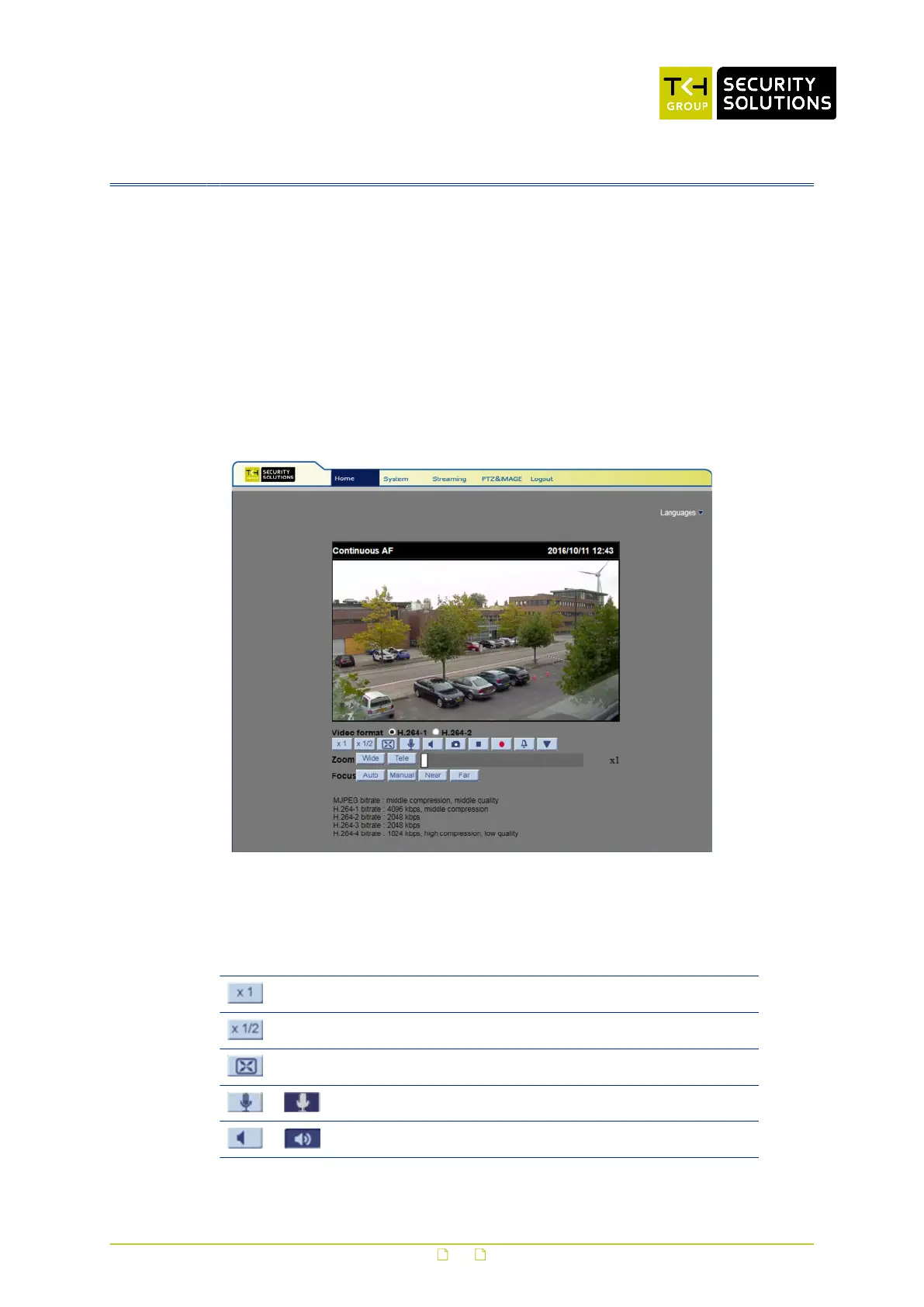 The Home page of the HSD820v2H3-E is made up of the camera preview, function buttons