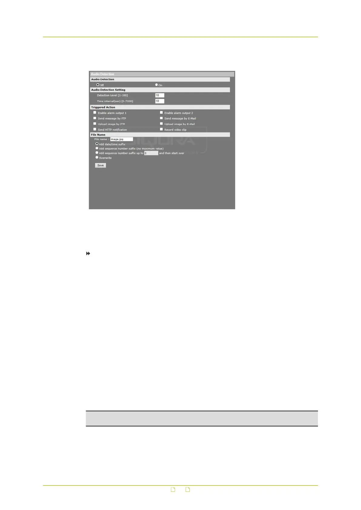 The Audio detection function allows the camera to detect audio and trigger alarms when the