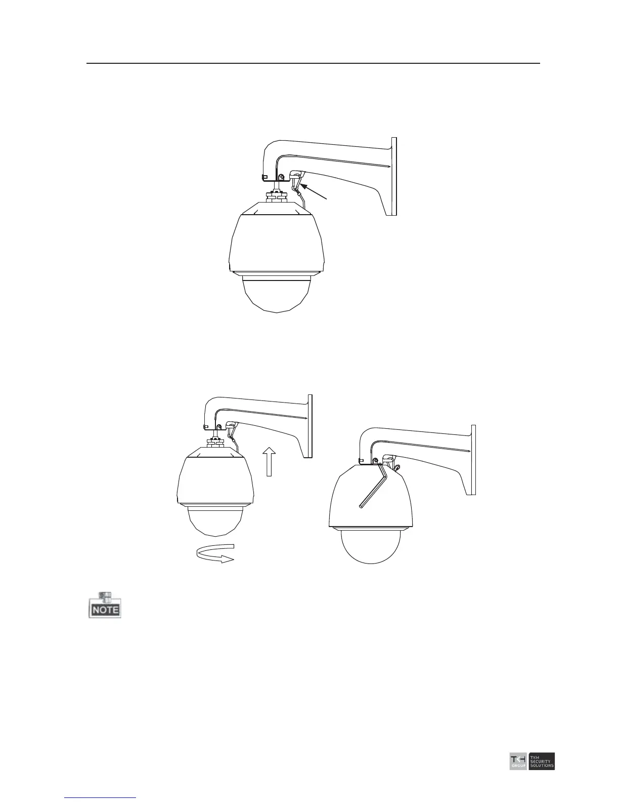 5). Install the speed dome to the bracket. Rotate the speed dome clockwise tightly.