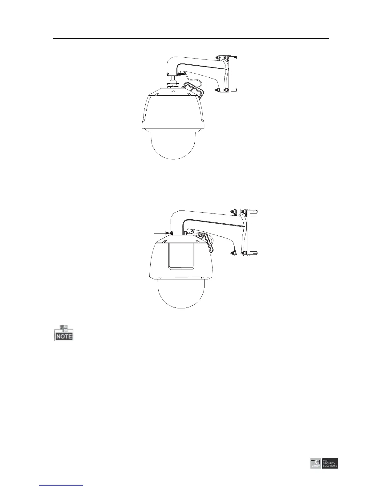 4). Install the speed dome to the bracket. Rotate the speed dome clockwise tightly.