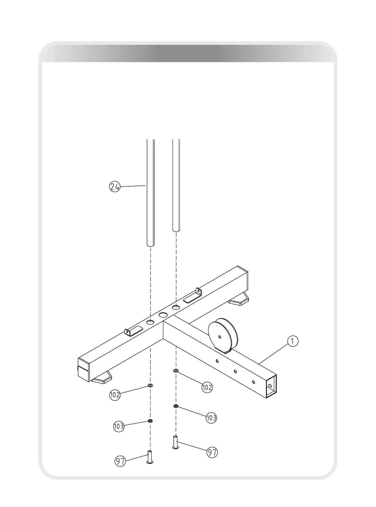 Insert the two Guide Rods (#24) into Rear Base (#1) and secure them in place
