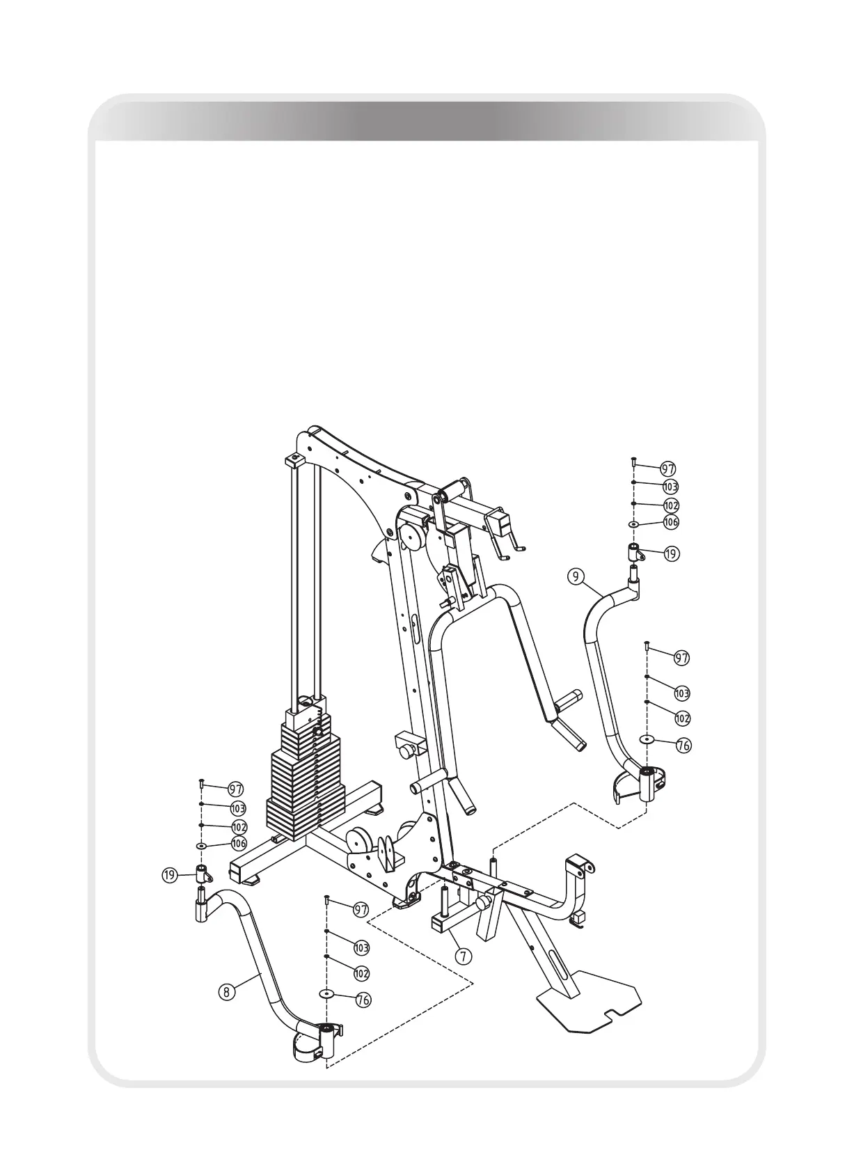1. Slide the Right Pec Dec Arm (#8) on to the shaft of the Pec Dec Mount (#7).