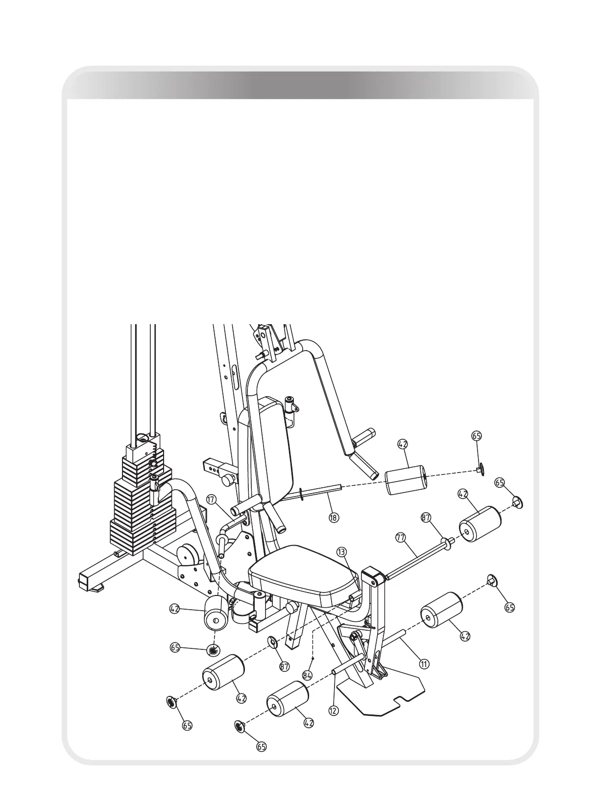 3. Slide two Upholstered Roller Pads (#42) onto the Leg Hold Frames (#17 &